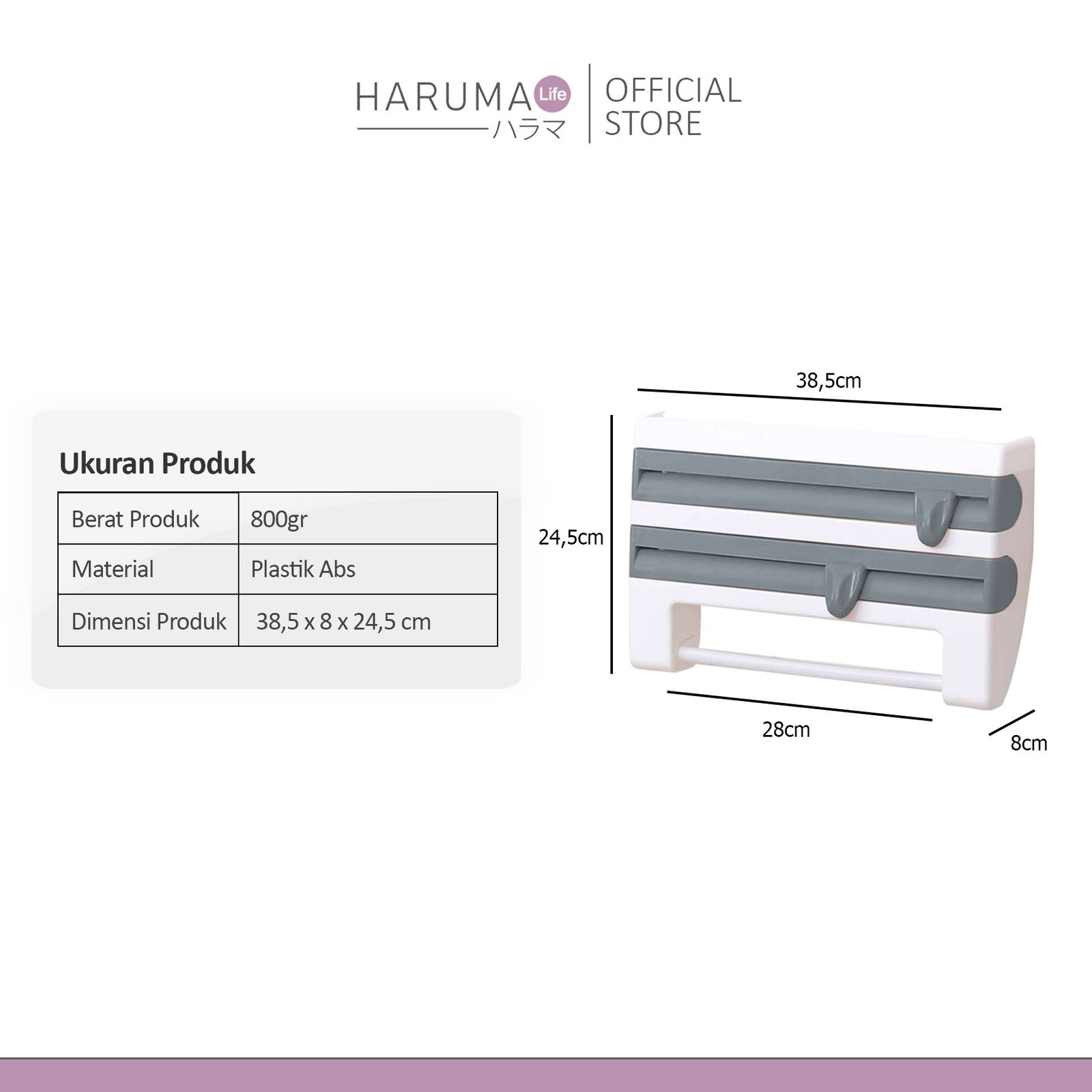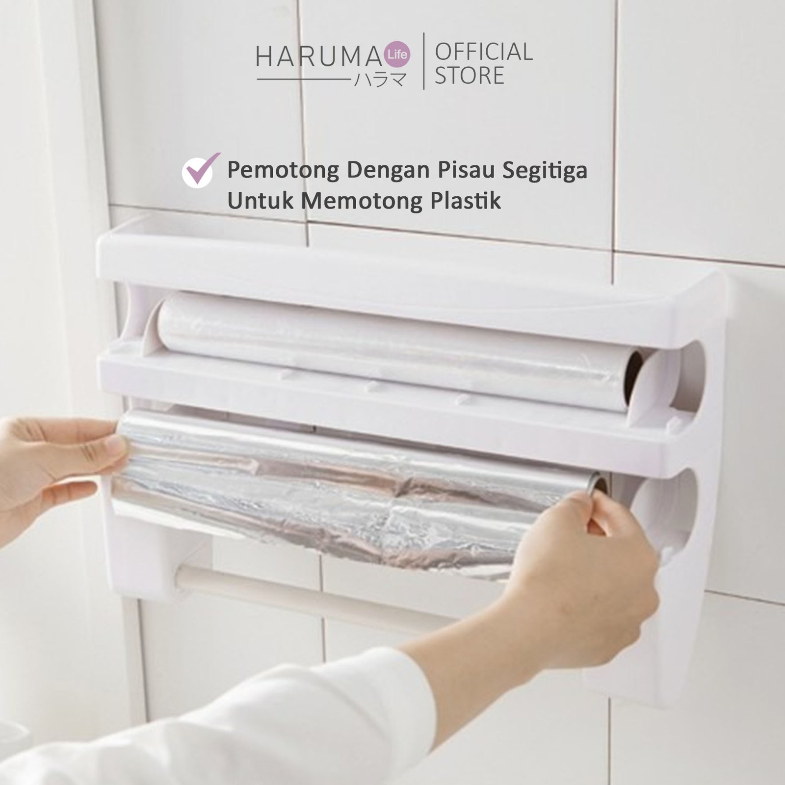 – Dapat digunakan sebagai wadah atau tempat plastik wrap, aluminium foil dan juga tissue gulung yang sudah dilengkapi dengan pisau pemotong sehingga dapat memudahkan pengguna untuk memotong plastik wrap serta alumunium foil.