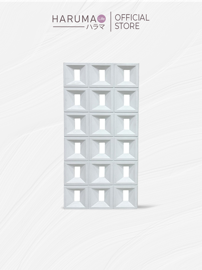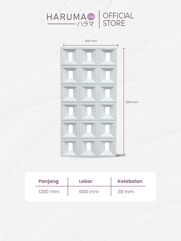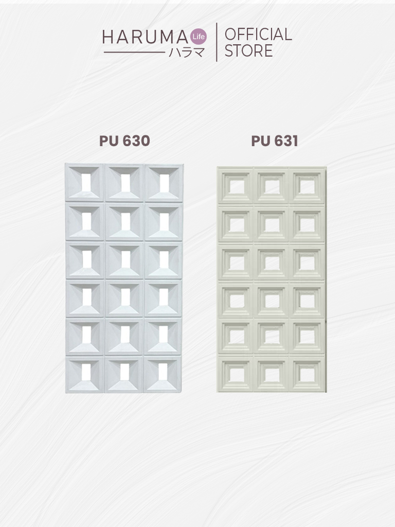 3D Wallpanel motif kotak berongga besar dari Haruma menghadirkan keseimbangan antara struktur dan estetika — menciptakan tampilan yang tegas namun tetap elegan.